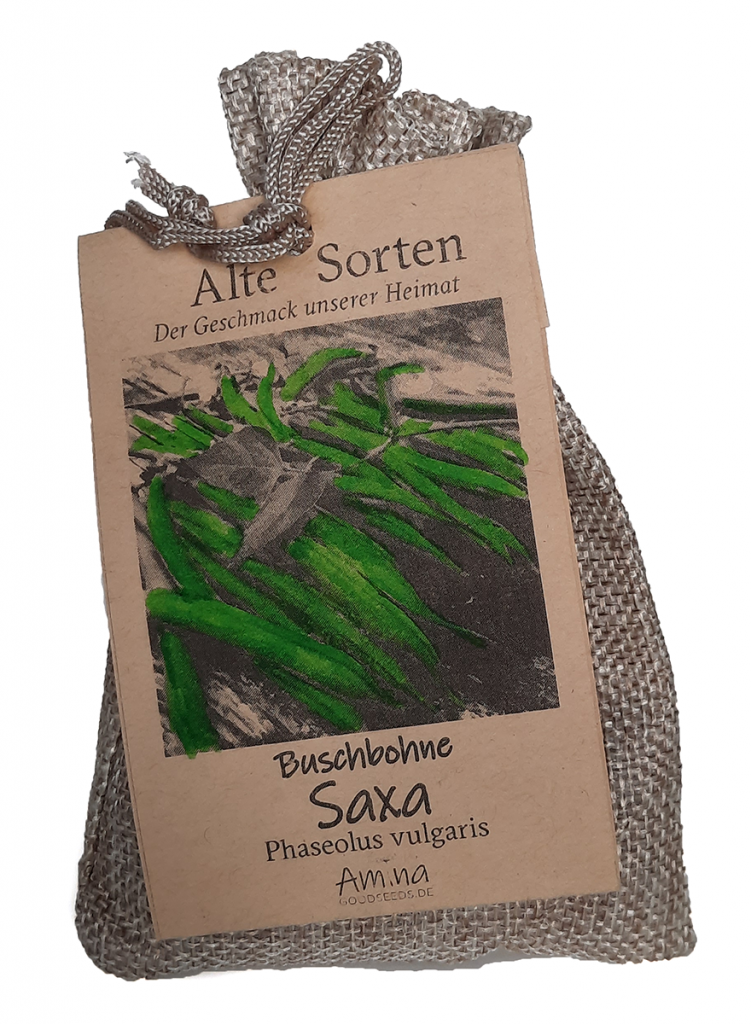 Die erste fadenlose Buschbohne Saxa stammt von Rudolf Schreiber (1864 – 1956) – einem der vielen berühmten Gemüsezüchtern Quedlinburgs. 1914 gezüchtet, wird sie bis heute aufgrund ihrer guten Eigenschaften angebaut. Die Saxa ist eine sehr frühe, grünhülsige Sorte mit hohem Ertrag und guter Qualität. Die zarten fadenlosen Hülsen sind rund und fast gerade wachsend, ca. 10 – 13 cm lang. Das Korn ist braun. Die Bohnen lassen sich vielseitig verwenden: als Beilage, in Salaten und Suppen, zum Sauereinlegen oder zum Einfrieren.